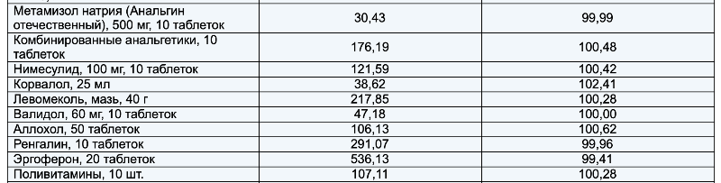 По официальным данным больше всего подорожали: корвалол – на 2,4%. Его цена за 25 миллилитров – 39 рублей. Аллохол – на 0,6%. Купить 50 таблеток можно на этой неделе за – 106 рублей. Комбинированные анальгетики можно приобрести 10 таблеток за – 176 рублей, что на 0,5% больше, чем на прошлой неделе. 10 таблеток по 100 миллиграмм нимесулида стоят – 121 рубль, что – на 0,4% больше.