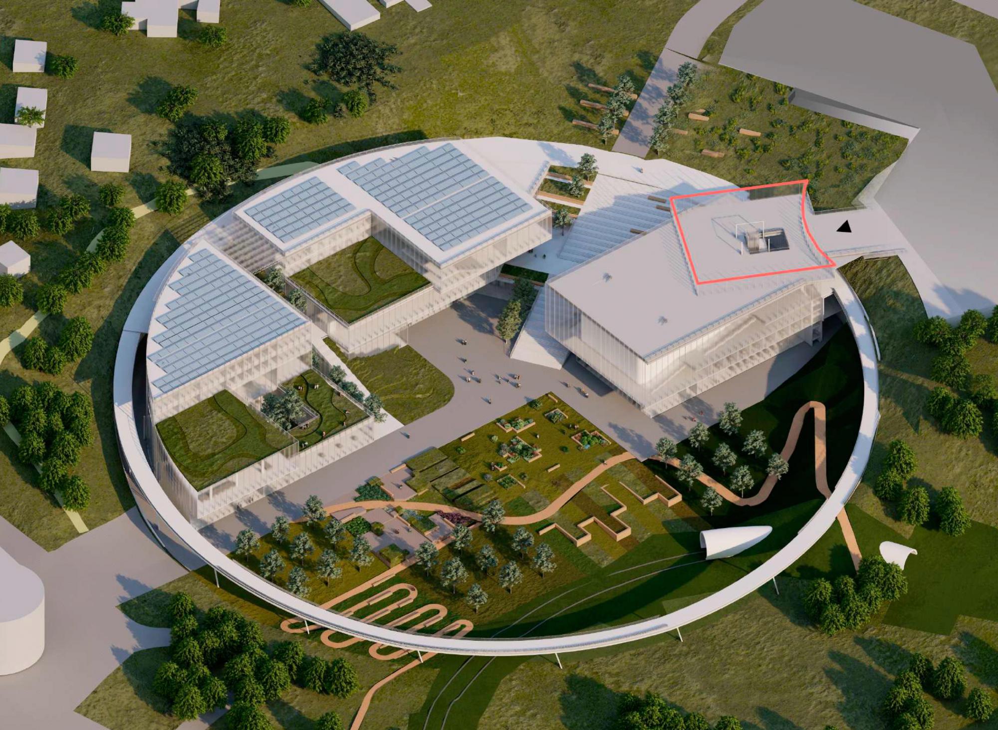 На крышах сооружений изначальным концепт-проектом предусмотрено создание зелёных зон с газонным покрытием, клумбами и кустарниками. Также на территории технопарка должен быть обустроен современный сквер.