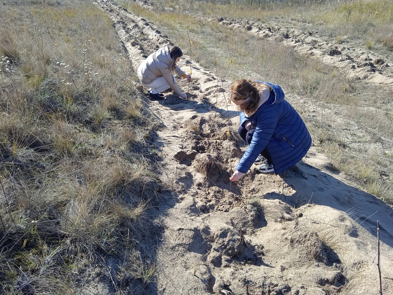 Саженцы березы, сосны и шелюги высаживаются рядами, с целью создания благоприятных условий для различных видов растений и животных, а также укрепления и сохранения природных ресурсов.