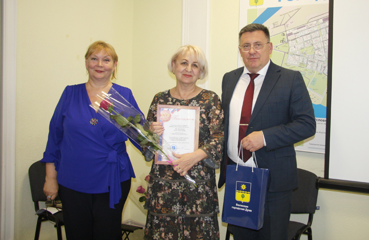 Юрий Дудник от имени Волжской городской Думы вручил благодарственные письма председателю общественной организации «Большая семья» Елене Рыбальченко , исполнительному директору фонда «Дети в беде» Татьяне Орловой , члену «Союза женщин города Волжского» Ирине Пономарёвой , заместителю начальника управления образования Елене Овчаренко , начальнику отдела опеки и попечительства Ирине Ершовой и другим представительницам городских учреждений, организаций и структурных подразделений.