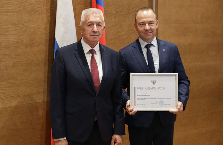 ПРЕДСЕДАТЕЛЬ ГОРДУМЫ ДМИТРИЙ ЯСТРЕБОВ ОТМЕЧЕН БЛАГОДАРНОСТЬЮ ПРЕДСЕДАТЕЛЯ СОВЕТА ФЕДЕРАЦИИ ЗА БОЛЬШОЙ ВКЛАД В РАЗВИТИЕ МЕСТНОГО САМОУПРАВЛЕНИЯ
