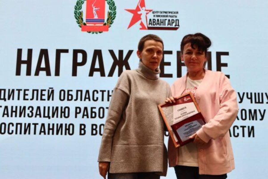 А также наградили победителей конкурса на лучшую организацию работы по военно-патриотическому воспитанию. В их числе - педагога-организатора умётовского клуба «Олимп», руководителя местного отделения «Волонтёры Победы Камышинского района» Татьяну Белову, ставшую лидером в номинации «Лучший представитель муниципального учреждения, реализующего программы в сфере патриотического воспитания Волгоградской области».