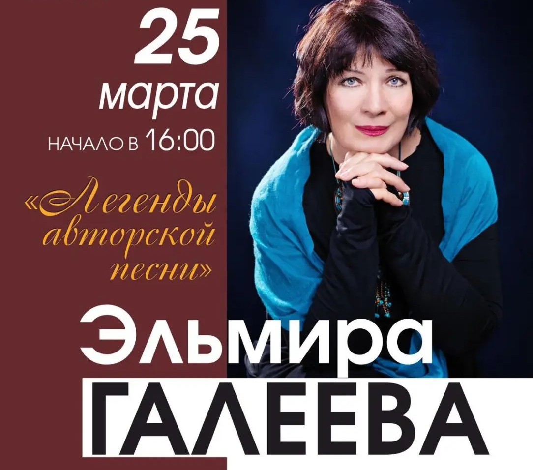 В Волгограде прозвучит ещё один концерт из цикла «Легенды авторской песни». Гостьей креативного пространства «Икра» (речпорт) станет обладательница уникального голоса, лауреат Грушинского фестиваля, автор песен и просто прекрасная женщина Эльмира Галеева.