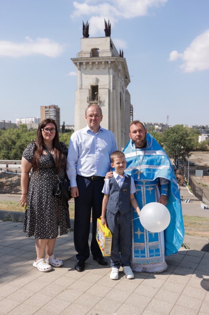 После Божественной литургии в день Успения Пресвятой Богородицы на территории храма святого праведного воина Феодора Ушакова города Волгограда будущих первоклассников, подопечных Волгоградского регионального общественного объединения «Многодетный Волгоград», поздравили с наступающим Днем знаний.
