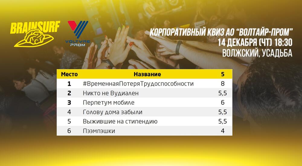 Данный квиз прошёл благодаря социальному партнёру ВПТ АО «Волтайр-Пром» | Волжский шинный завод и команде Квиз BrainSurf в Волжском. Просто Квиз