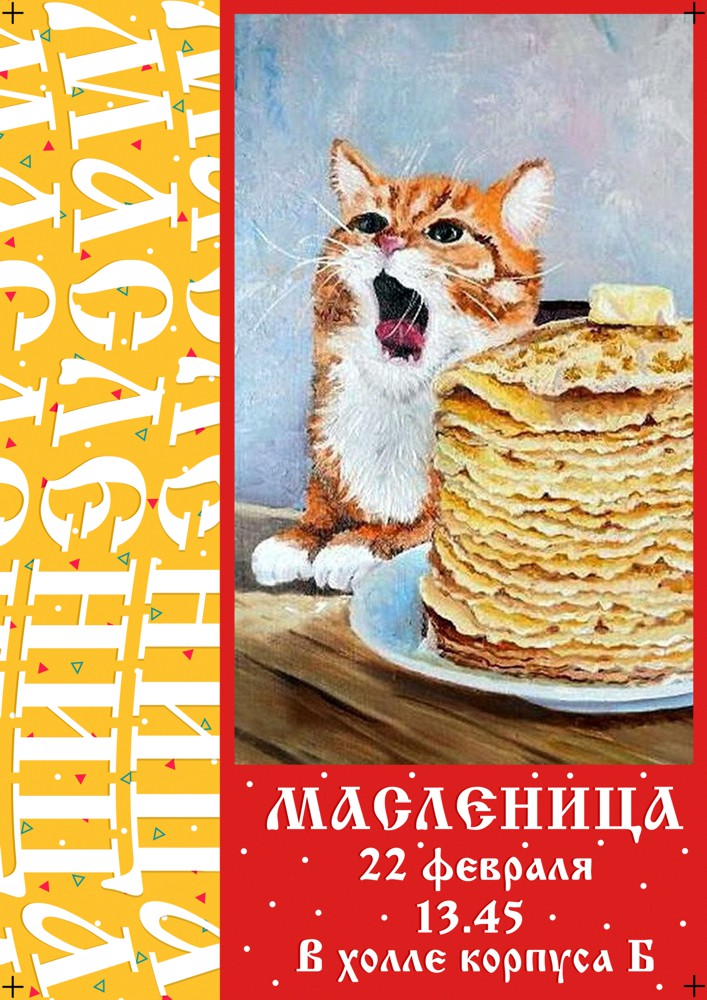 22 февраля в холле корпуса Б пройдет мероприятие , посвященное Масленице.