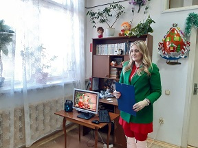 Чтобы немного отдохнуть, библиотекарь рассказала об истории появления Дедушки Мороза и Снегурочки. Участник мероприятия с большим удовольствием посмотрели видеоролик о вотчине Деда Мороза в Великом Устюге.