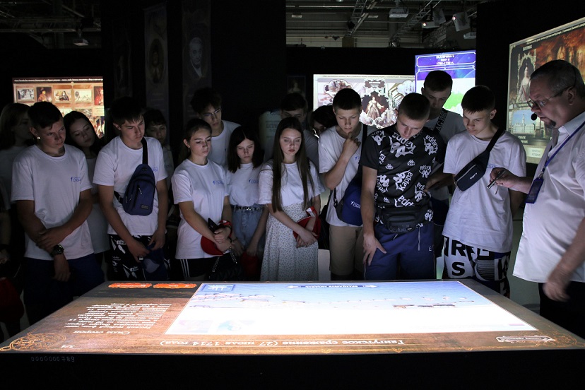 В историческом парке представлены все новейшие формы информационных носителей: сенсорные столы и экраны, лайтбоксы, коллажи, проекторы и планшеты. Ребята с интересом прослушали рассказ экскурсоводов.