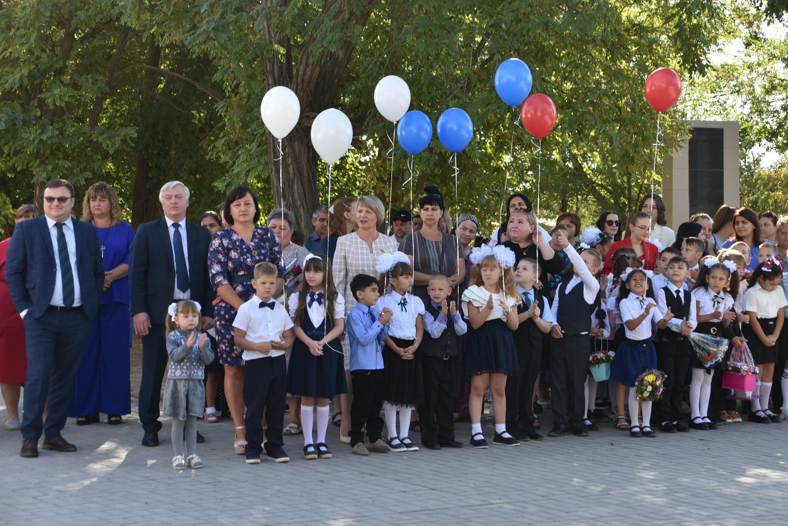 После торжественных звуков государственного гимна линейка, посвященная Дню знаний и юбилею школы, была открыта.
