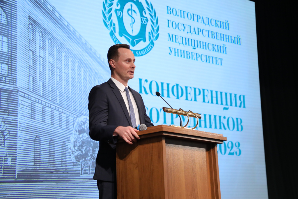 На ежегодной конференции сотрудников Волгоградского государственного медицинского университета Минздрава России доктор медицинских наук, ректор Владимир Шкарин представил отчет о результатах работы вуза в 2022/2023 учебном году и задачах на 2023/2024 учебный год.