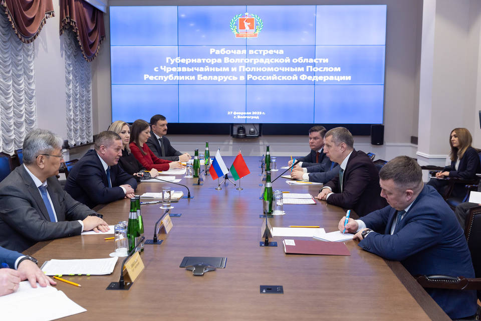 Сегодня, 27 февраля, губернатор Волгоградской области Андрей Бочаров на встрече с Чрезвычайным и Полномочным Послом Республики Беларусь в России Дмитрием Крутым обсудили промежуточные результаты взаимодействия в различных сферах, а также перспективные направления совместной работы на следующий период.