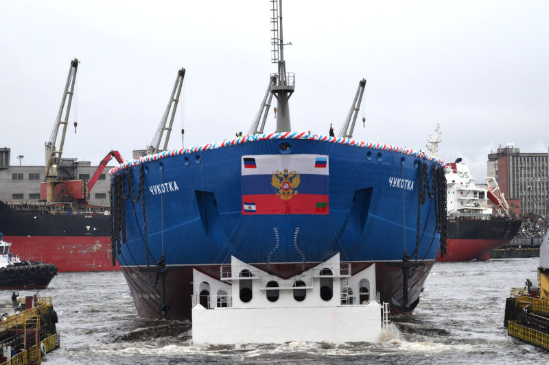 Атомный ледокол «Чукотка» спущен на воду со стапелей Балтийского завода в Санкт-Петербурге. Он был построен по заказу госкорпорации «Росатом» и стал пятым по счёту атомоходом проекта 22220. Атомные ледоколы этого проекта являются самыми большими и мощными в мире. Их стратегическая цель: обеспечение круглогодичной навигации в Арктике.