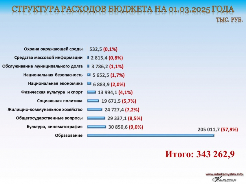 Иллюстрация: сайт администрации Камышина (в процентах показана доля расходов отрасли от всех расходов бюджета)