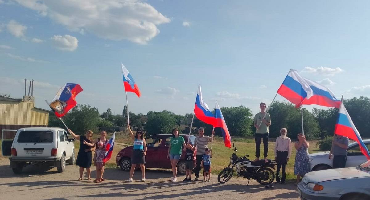В Калачевском районе партийцы присоединись к автопробегу. В массовом заезде приняли участие десятки человек, в руках они держали флаги России.