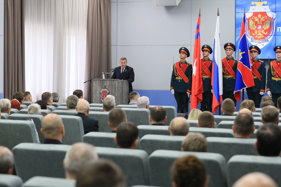 До начала мероприятия глава региона и начальник ведомства Александр Ларин возложили цветы к памятнику Феликсу Дзержинскому, установленному во дворе Управления.