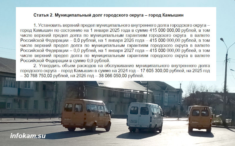 Муниципальный долг Камышина утверждён «по состоянию на 1 января 2025 года в сумме 415 млн рублей». Городские власти надеются сдержать рост этого показателя на той же сумме и в последующие два года. Как им это удастся, покажет время. Ведь еще 10 лет муниципальный долг составлял 120 млн рублей.