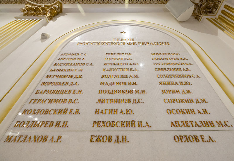 В зале Воинской и Трудовой Славы золотыми буквами выбиты имена наших земляков — легендарных людей, своими подвигами и трудом прославивших Отечество: вошедшие в историю имена Евгения Орлова и Даниила Ежова теперь также высечены на этих стенах.