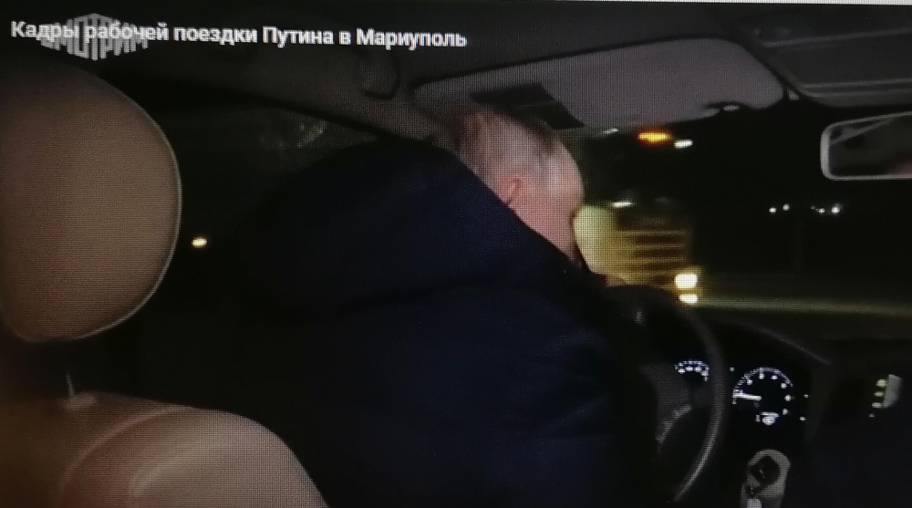 Путин прилетел в Мариуполь на вертолете. За рулем автомобиля он объехал несколько районов города, совершая остановки.