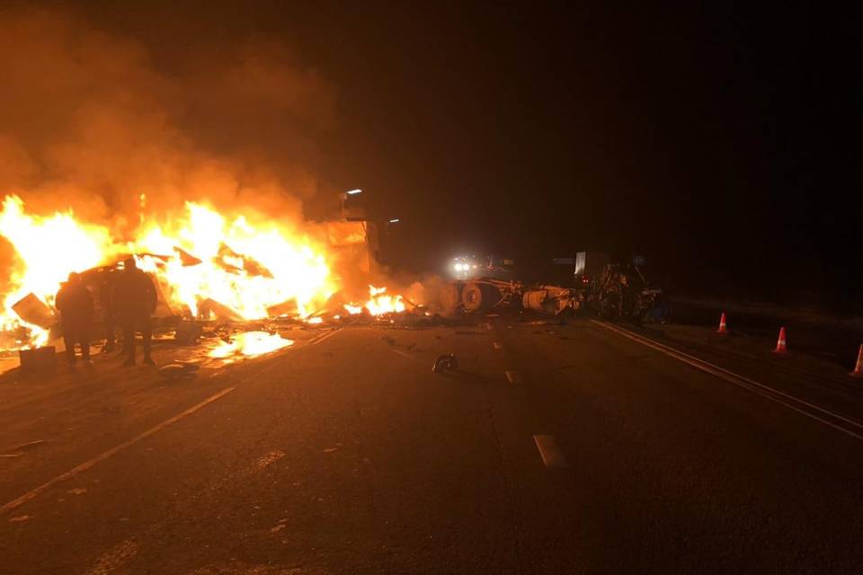 Авария случилась на трассе Сызрань-Саратов-Волгоград в 18:40 сегодня, 26 января. На 601-ом километре автодороги Р-228 фуры врезались друг в друга, а затем произошел пожар.