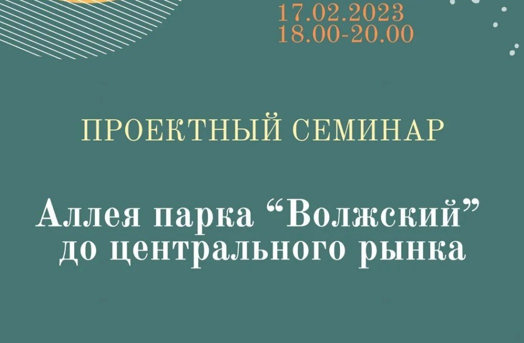 17 февраля состоится очередной проектный семинар по вопросу благоустройства аллеи парка «Волжский» до центрального рынка. Встреча пройдет в малом зале центра культуры и искусства «Октябрь» (ул. Сталинградская, 6а), начало в 18:00. Перед горожанами выступят специалисты проектной организации и муниципального учреждения «СГТ». В работе семинара примут участие представители администрации города, общественных организаций, окружных советов и все желающие.