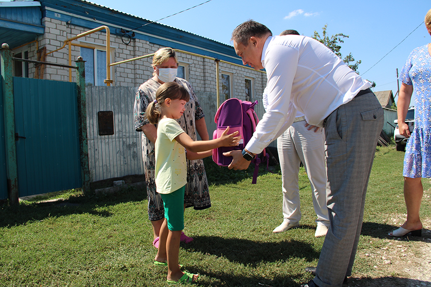 В станице Глазуновской вместе с главой района В.В. Денисовым, его заместителем по социальным вопросам Ю.Н. Куликовым, главой Глазуновского сельского поселения Е.А. Егориной депутат вручил подарок готовящейся пойти в первый класс Зое Николаевой, дочери погибшего в ходе СВО лейтенанта Николаева О.В., удостоенного ордена Мужества.