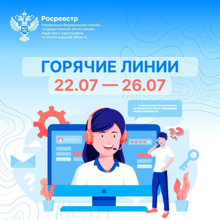 Информируем о проведении «горячих линий» Управления Росреестра по Волгоградской области 25 июля 2024 года с 11.00 до 12.00 специалисты межмуниципального отдела по городу Волжскому,