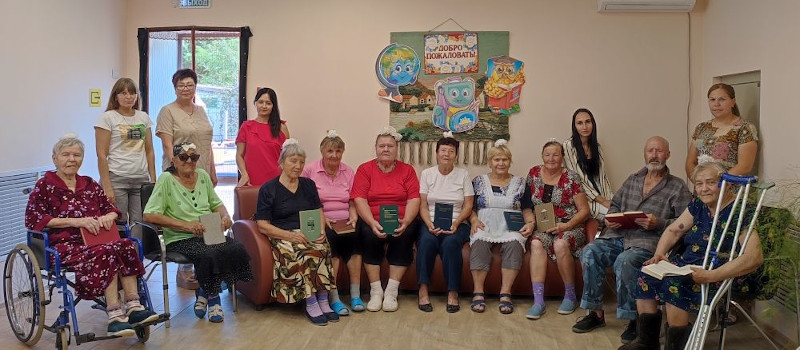 В ходе беседы пожилые люди вспомнили свои школьные годы. Каждый из них получил книгу в подарок.