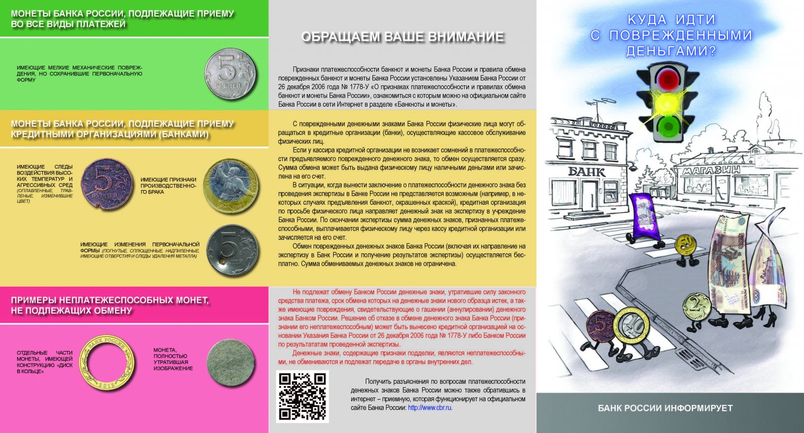Центральный банк Российской Федерации информирует о признаках подлинности и платежеспособности денежных знаков: