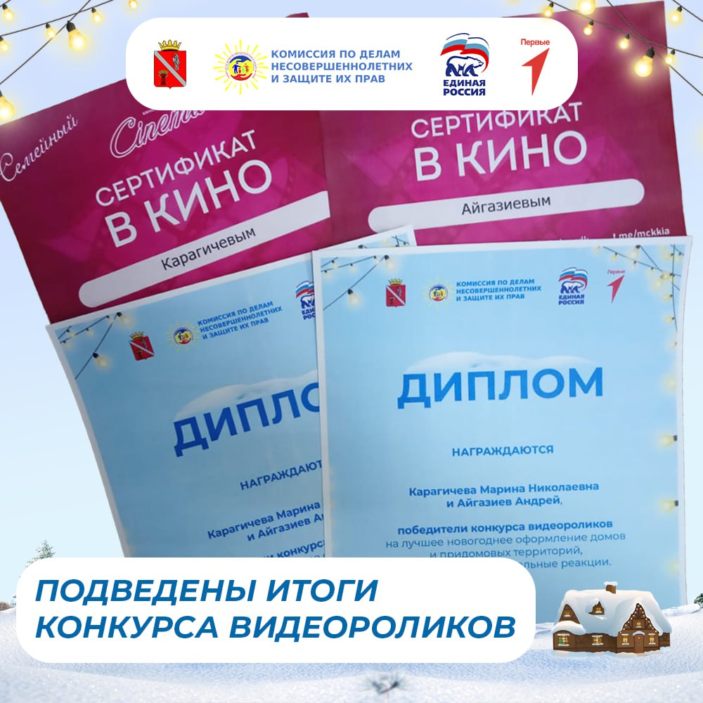 Авторы будут отмечены призом от местных отделений ВПП «Единая Россия» и «Движение Первых», дипломом комиссии по делам несовершеннолетних и защите их прав Чернышковского района и семейными сертификатами на бесплатное посещение киносеанса в кинозале районного Дома культуры.