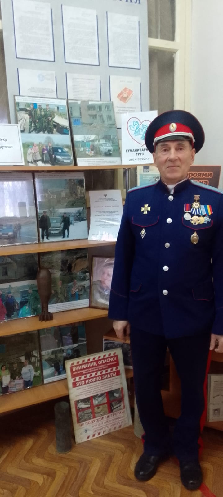 На мероприятии присутствовал Карпов Владимир Васильевич - краевед, член Союза российских писателей, казачий полковник СКВРиЗ. Владимир Васильевич подробно рассказал о своем участии в доставке гуманитарных грузов на Донбасс с 2014 года. Живой интерес у кадетов вызвали, привезенные из зоны боевых действий остатки разорвавшихся снарядов, фото с мест. В завершении почтили память погибших земляков- участников СВО, в сопровождении песни "Встанем!"