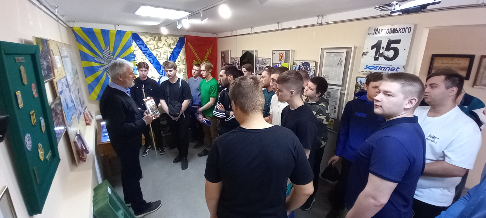 Экскурсовод ознакомил будущих защитников Отечества с экспозицией, посвященной ходу специальной военной операции, рассказал об участии в ней военных из числа земляков, о вкладе чернышковцев в оказание гуманитарной помощи фронту.