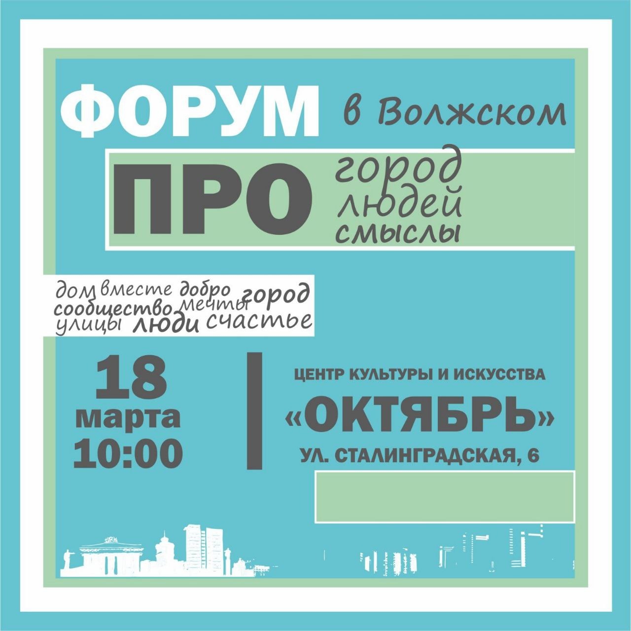 Открытие первого форума городских сообществ «Про город, людей, смыслы» состоится 18 марта в 10:00 в ЦКиИ «Октябрь».