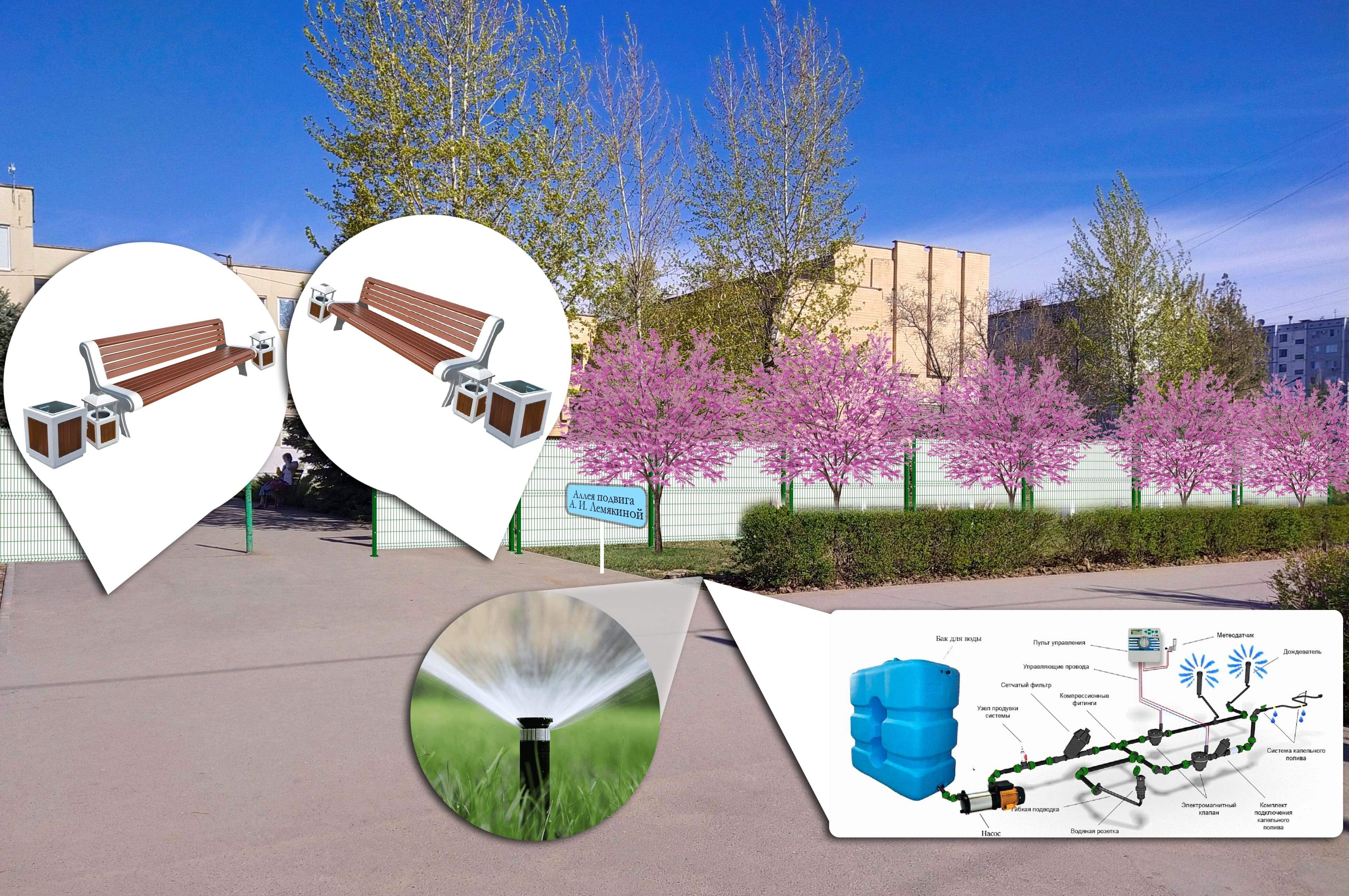 Проект «Здоровье детей в наших руках» предусматривает размещение на территории 12-й школы детского игрового комплекса: шахматной площадки, площадки ПДД, а также рукохода, баскетбольных стоек с кольцами, теннисного стола, беседки. В кадетской школе планируется создание «Полосы мужества» с лабиринтами, шведской стенкой, шагоходами, скалолазами, рукоходами и т.д. В лицее № 1 по проекту инициативного бюджетирования будет обустроен автоматический полив аллеи Александры Ивановны Лемякиной – жительницы Волжского, участницы Сталинградской битвы, в декабре 2022 года отметившей 100-летний юбилей. Также в рамках проекта предусмотрена замена ограждения лицея и установка малых архитектурных форм (скамеек, вазонов и урн для мусора) на территории аллеи.