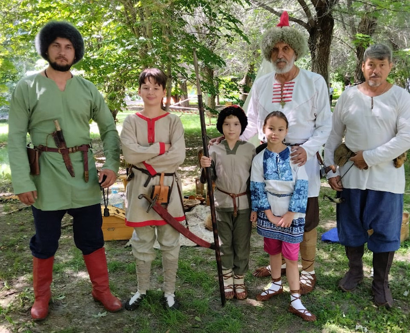 И вот трое казаков и трое казачат на выделенной площадке на набережной – в районе храма и памятника «Проводы казака», обустроили «Казачий бивак XVII века». Все в исторических костюмах и у каждого расписана своя роль. Казачата - Луночкин Арсений и Ушакин Николай - стояли на посту, а заодно были добровольными гидами выставки; Арина Луночкина стала «инструктором» по стрельбе из лука. Казачата дали интервью телекомпании ВГТРК. После окончания фестиваля Волгоградский Круг казаков поощрил их Благодарственными письмами.
