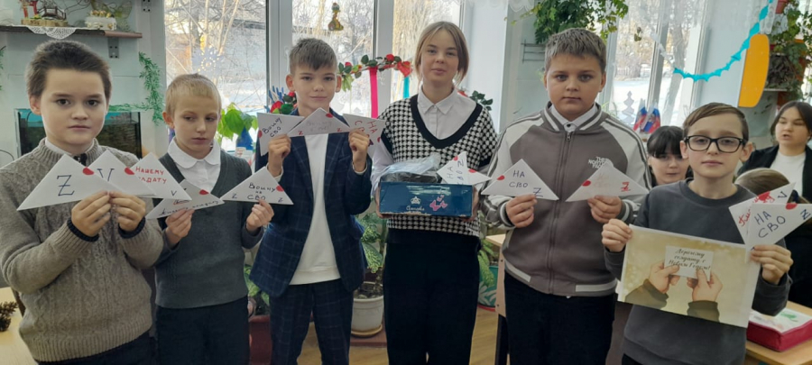 А школьники, не отставая от взрослых, внесли свою лепту в подготовку новогодних сюрпризов. Ребята написали и нарисовали душевные и яркие письма и рисунки для бойцов. В каждом - пожелание здоровья, воинской удачи и победного возвращения домой!
