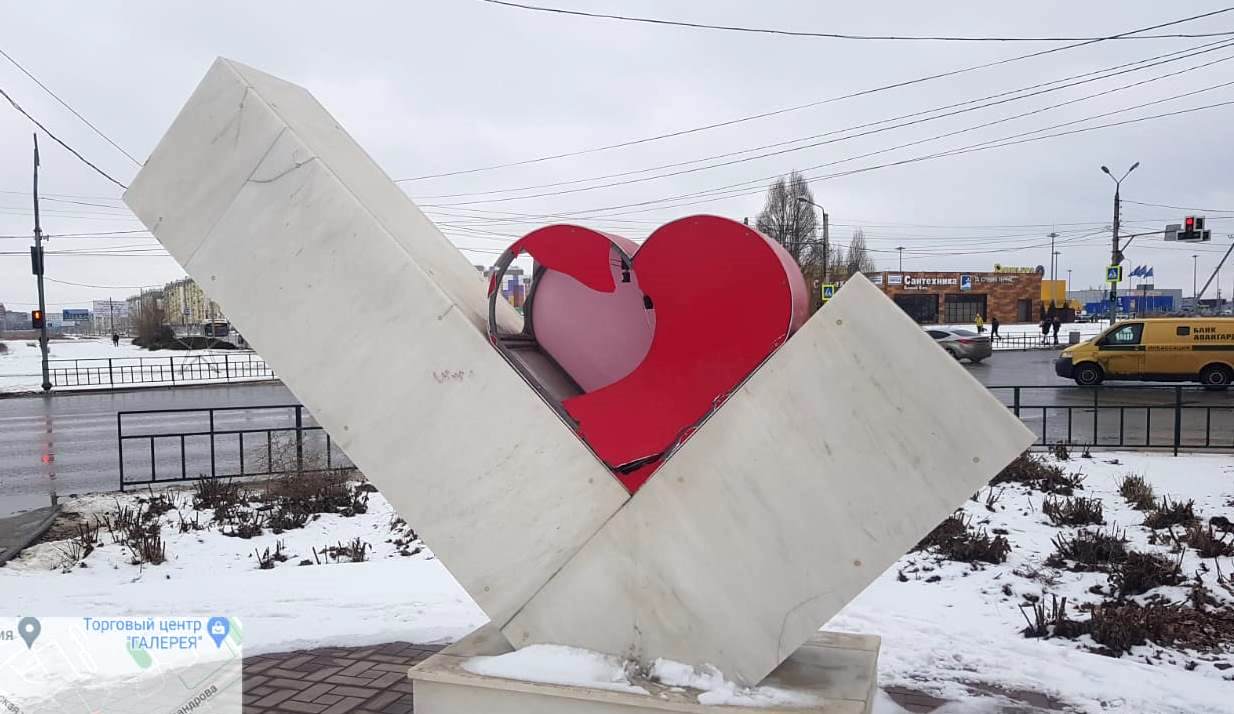 На днях вандалы разбили объемную фигуру сердца на знаке «Я люблю Волжский», расположенном на пересечении улиц Александрова и Карбышева.