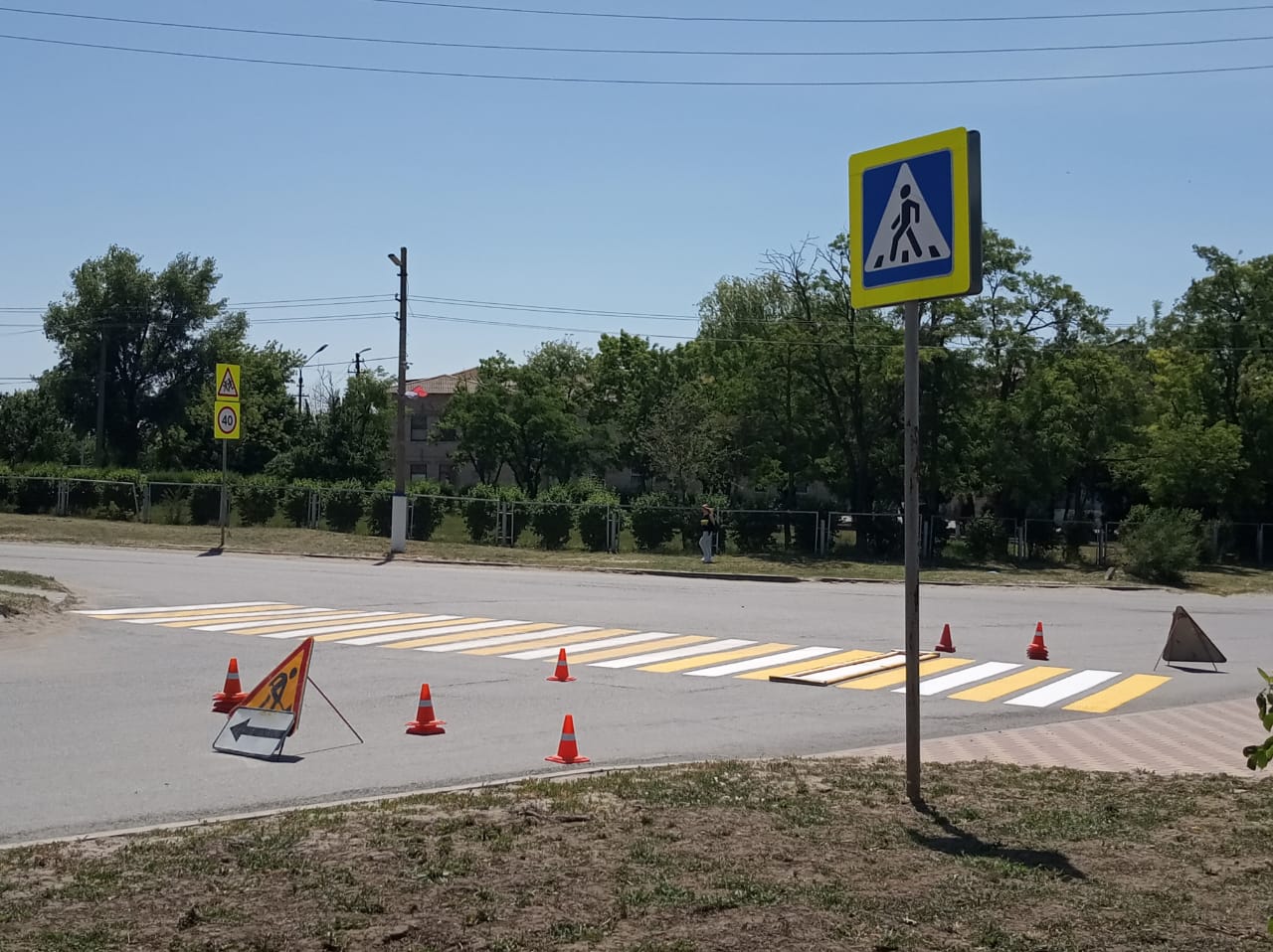 Всего специалистам учреждения необходимо обновить разметку 9-и пешеходных переходов. Работы будут завершены к концу следующей недели.