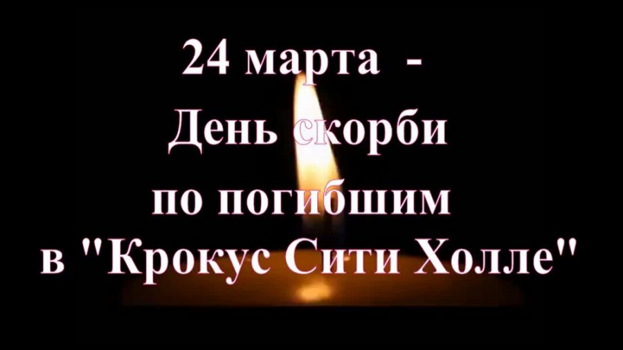 В стране день траура по погибшим в результате террористического акта в "Крокус Сити Холле". Приспущены государственные флаги, отменены праздничные и развлекательные мероприятия. Таким образом народ России выражает скорбь и соболезнование родственникам погибших.