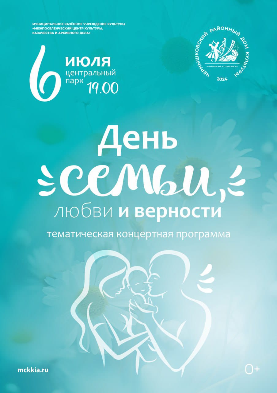 В субботу, 6 июля, в центральном парке р.п.Чернышковского состоится тематическое мероприятие, посвященное Дню семьи, любви и верности.