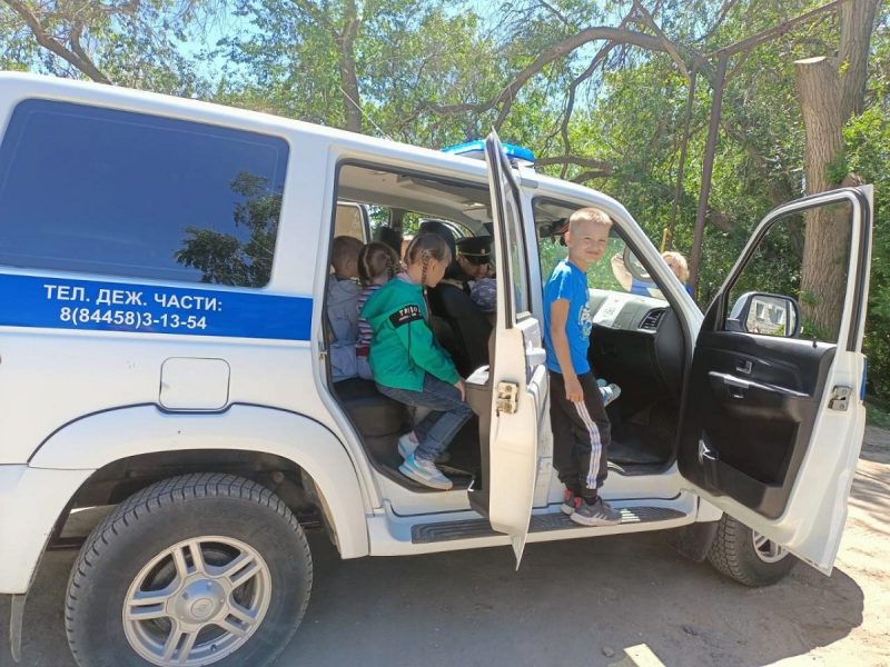 После беседы мальчишкам и девчонкам дали возможность посидеть в патрульном автомобиле, примерив на себя роль автоинспектора. Детям показали, как работают громкоговорящее устройство и проблесковые маячки.