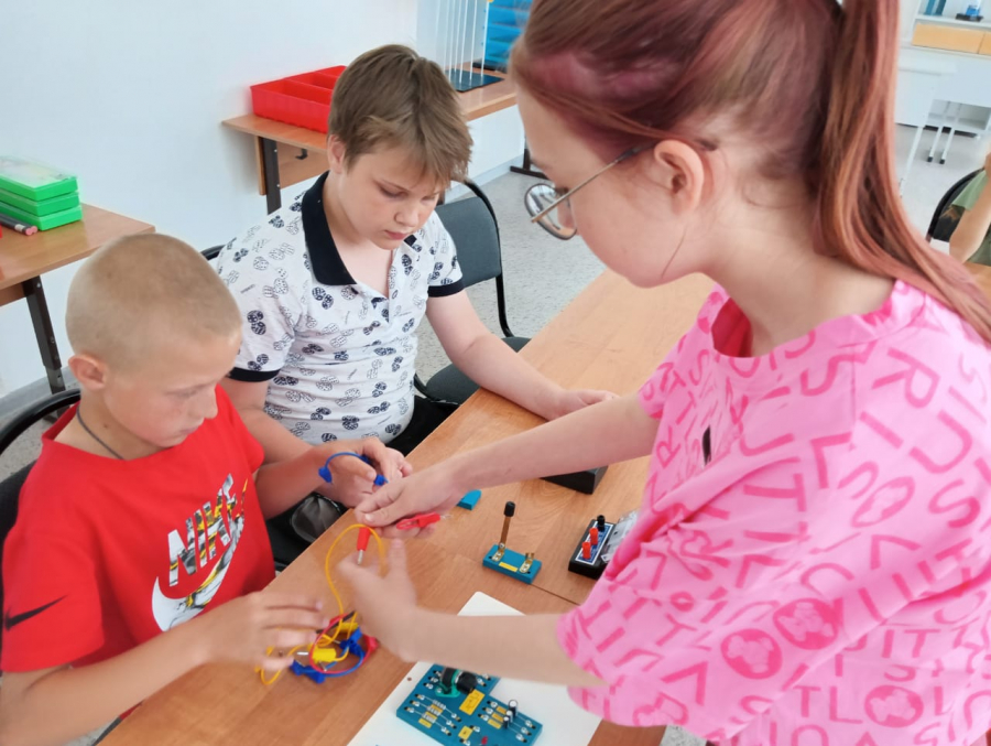 - Мне очень понравилось! Поначалу было трудно, но Катя нам подробно всё объяснила - и мы смогли сделать так, чтобы лампочка загорелась, - поделилась воспитанница лагеря Полина Быкова.