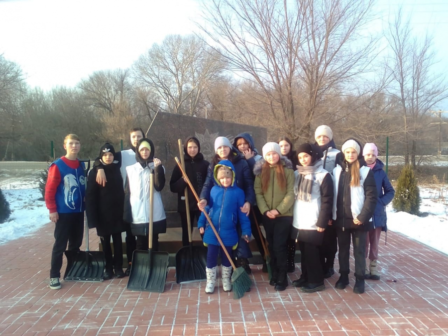 А в Верхнегрязнухинской школе провели акцию «Сохранить, чтобы помнить». Ребята приняли участие в благоустройстве памятника «И помнит мир, спасённый вами». Со старанием дети расчистили плитку и прилегающую территорию от снега.