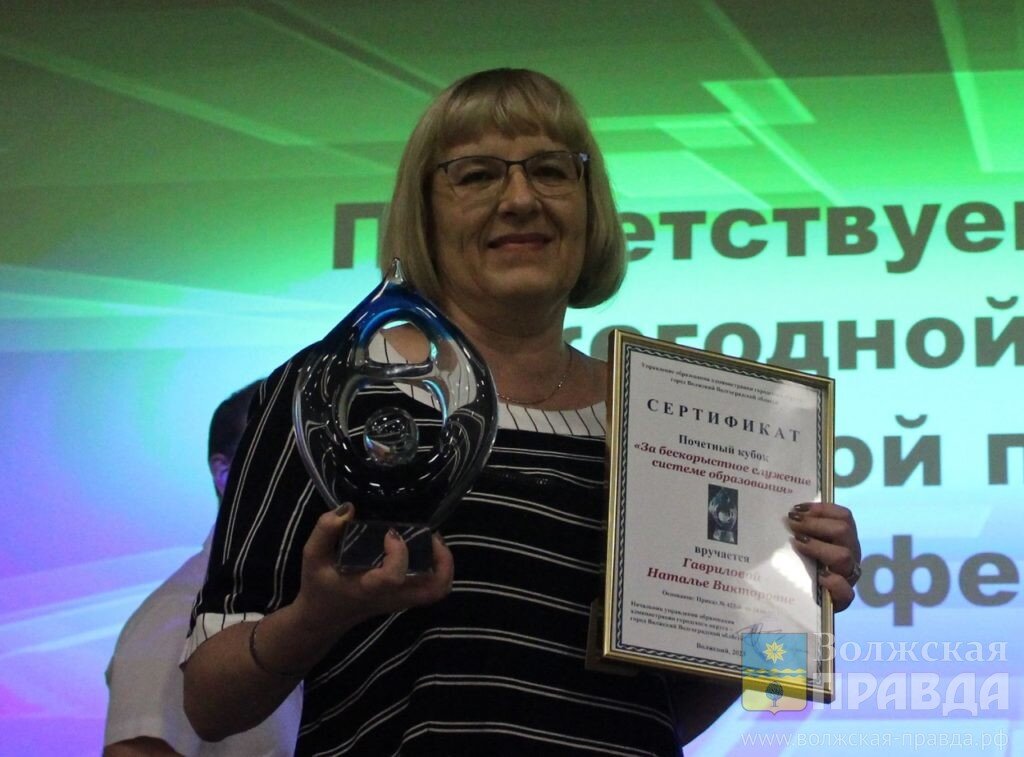 Труд Натальи Гавриловой отмечен почётными грамотами Министерства образования и науки Российской Федерации, в прошлом году ей было присвоено звание «Почетный работник сферы образования». Также педагог была удостоена почетного знака «За бескорыстное служение системе образования», который с 2016 года вручается самым достойным педагогам Волжского, много лет отдавшим профессии.