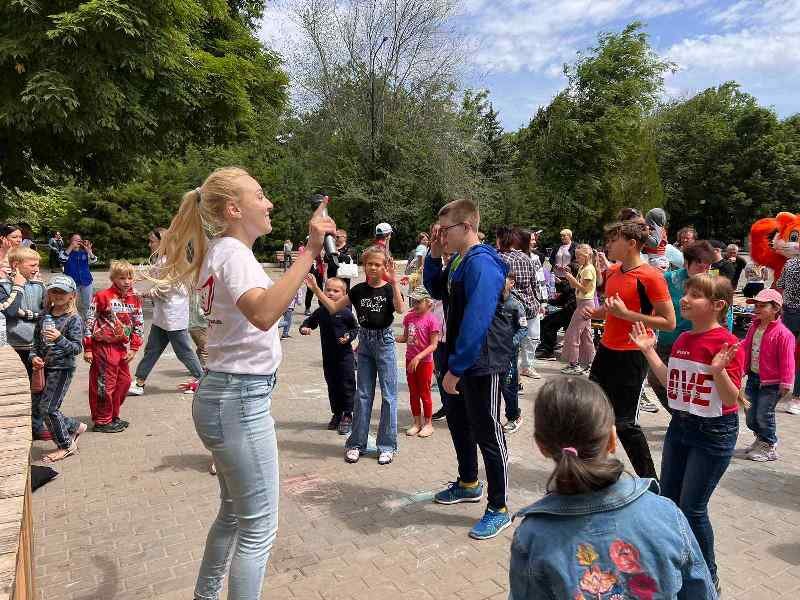 Развлекательная программа не оставила равнодушным ни одного ребенка: зажигательные танцы, конкурсы и загадки, подвижные игры, раскраски и, конечно, мыльные пузыри. В завершение мероприятия гости праздника приняли участие во флешмобе с большим триколором.
