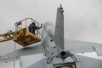 Подрядная компания приступила к покраске фюзеляжа самолета-памятника «Постамент с МИГ-21С», расположенного в пос.