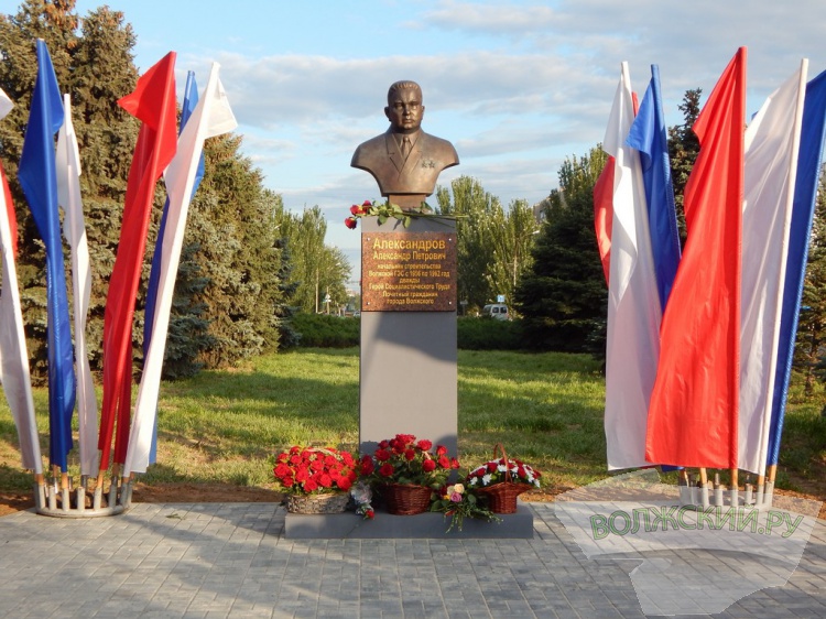В преддверии 69-й годовщины со дня основания Волжского в городе появился памятник одному из его основателей начальнику строительства Сталинградской ГЭС дважды Герою Социалистического труда, Почетному гражданину города Волжского Александру Александрову .