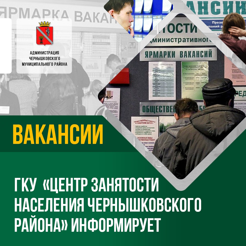 Центр занятости населения Чернышковского района сообщает об имеющихся вакансиях: