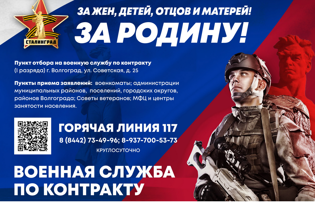 С порядком оформления и условиями прохождения военной службы по контракту можно ознакомиться в мобильном пункте, размещенном на площади Ленина, а также в военном комиссариате Волжского по адресу: пр. Дружбы, 44. Время приема: понедельник – пятница с 9:00 до 13:00; выходные дни: суббота, воскресенье.