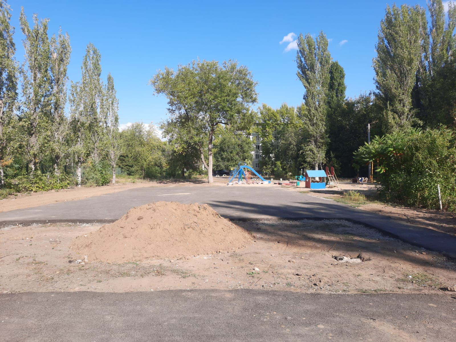 В настоящее время специалисты подрядной организации выполнили обрезку сухих ветвей деревьев, завезли грунт, заасфальтировали саму площадку и пешеходные дорожки. Завтра рабочие приступают к устройству закладных под тренажеры – их будет установлено 7 штук. Также на площадке смонтируют гимнастический комплекс, два баскетбольных щита и теневой навес. Планируется, что до конца сентября работы по созданию новой спортивной площадки во дворе по ул. Карбышева, 19 будут завершены.