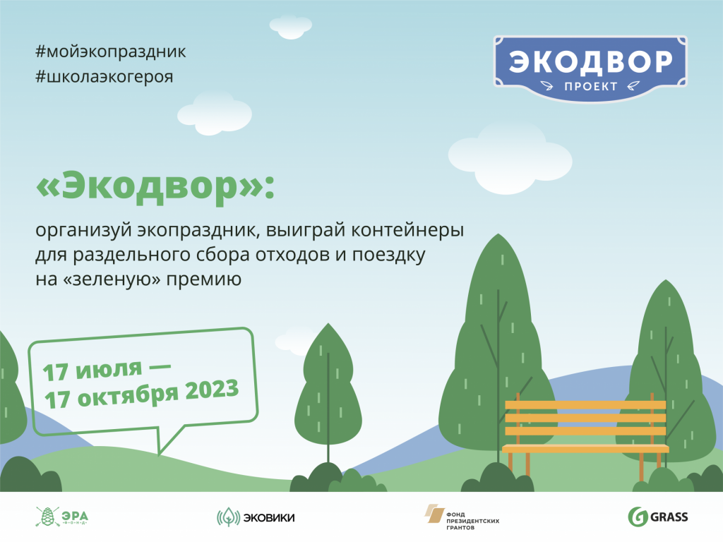 За последние годы в России прошли сотни экологических акций в формате экодворов. Для развития этой инициативы Фонд «ЭРА» запускает конкурс дворовых экологических праздников, чтобы вдохновить активистов. Любой активный житель может провести в своем городе мероприятие по готовой инструкции, выиграть контейнеры для раздельного сбора отходов и поездку в Москву на церемонию награждения лауреатов Всероссийской экологической премии «Экопозитив».